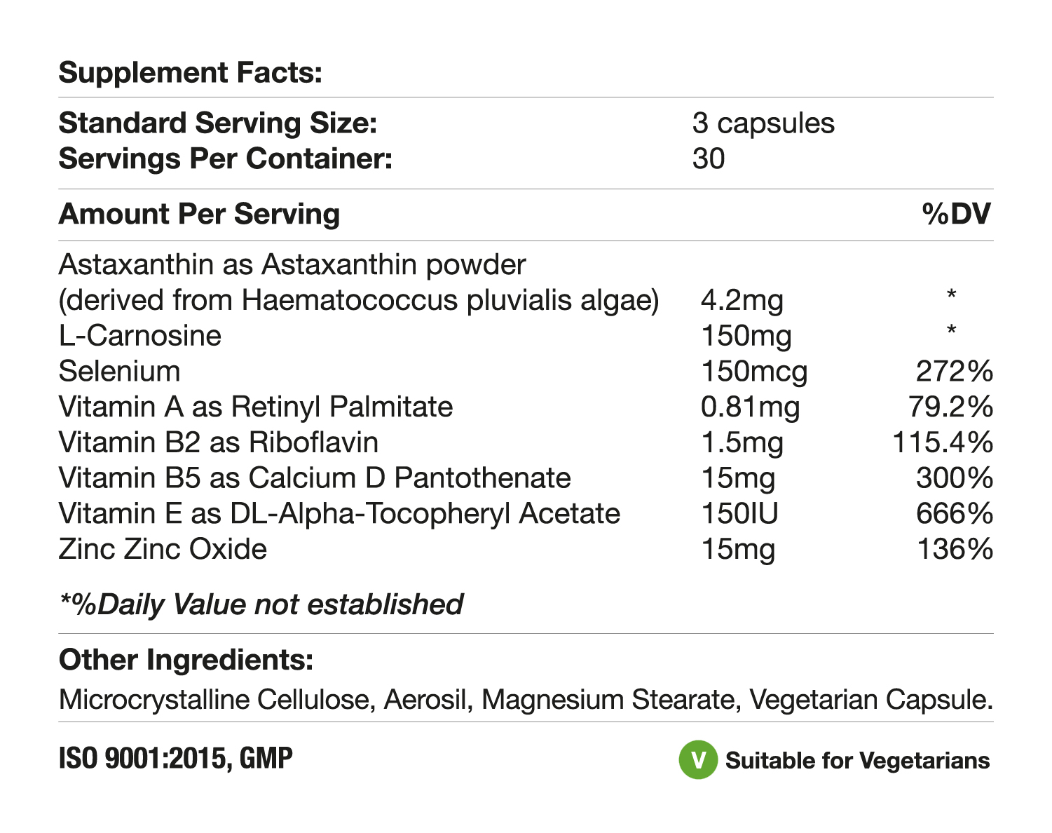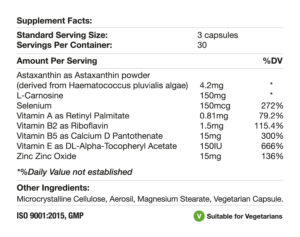 Astaxanthin as Astaxanthin powder (derived from Haematococcus pluvialis algae) 4.2mg*